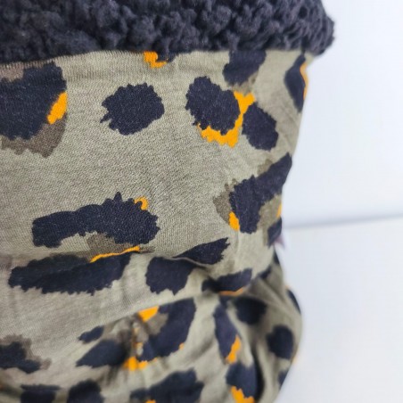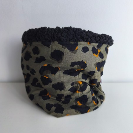 Cuello talla adulto confeccionado a mano en Barcelona en tejido de punto de algodón y viscosa, con tejido borreguito polar negro.