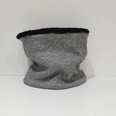 Cuello talla adulto en tejido grueso de punto y tejido borreguito polar negro.