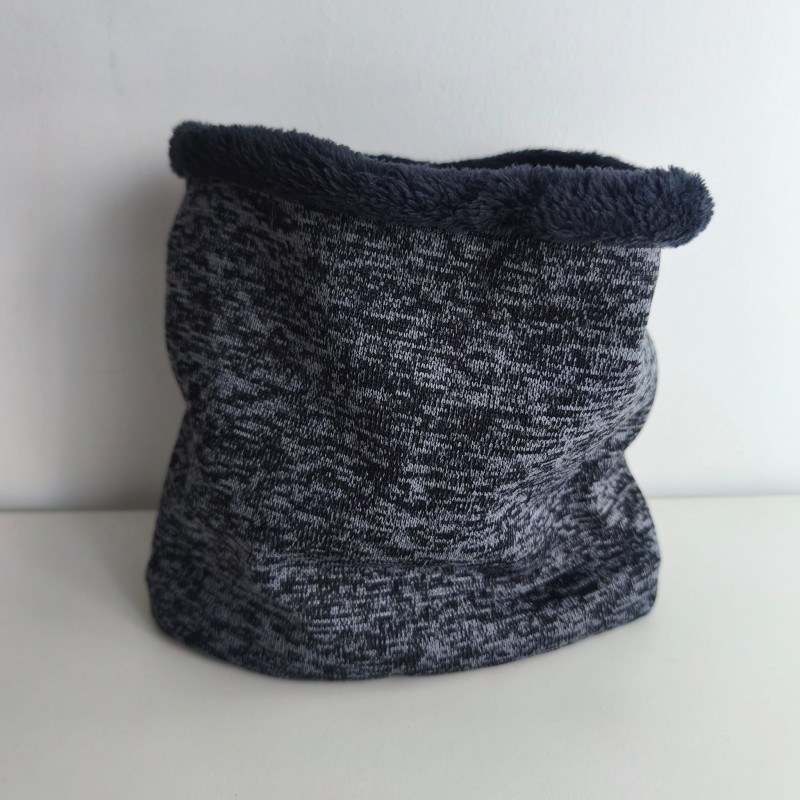 Cuello talla adulto confeccionado a mano en Barcelona en tejido de punto de algodón y viscosa, con tejido borreguito polar negro.