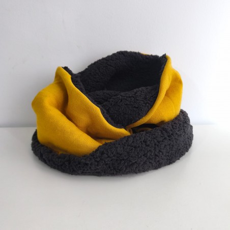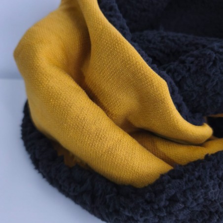 Cuello doble talla adulto confeccionado a mano en Barcelona en tejido de punto de algodón, con tejido borreguito polar negro.