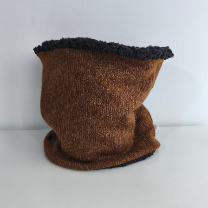 Cuello talla adulto en tejido de punto y tejido borreguito polar negro.
