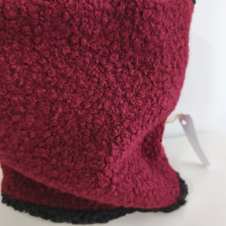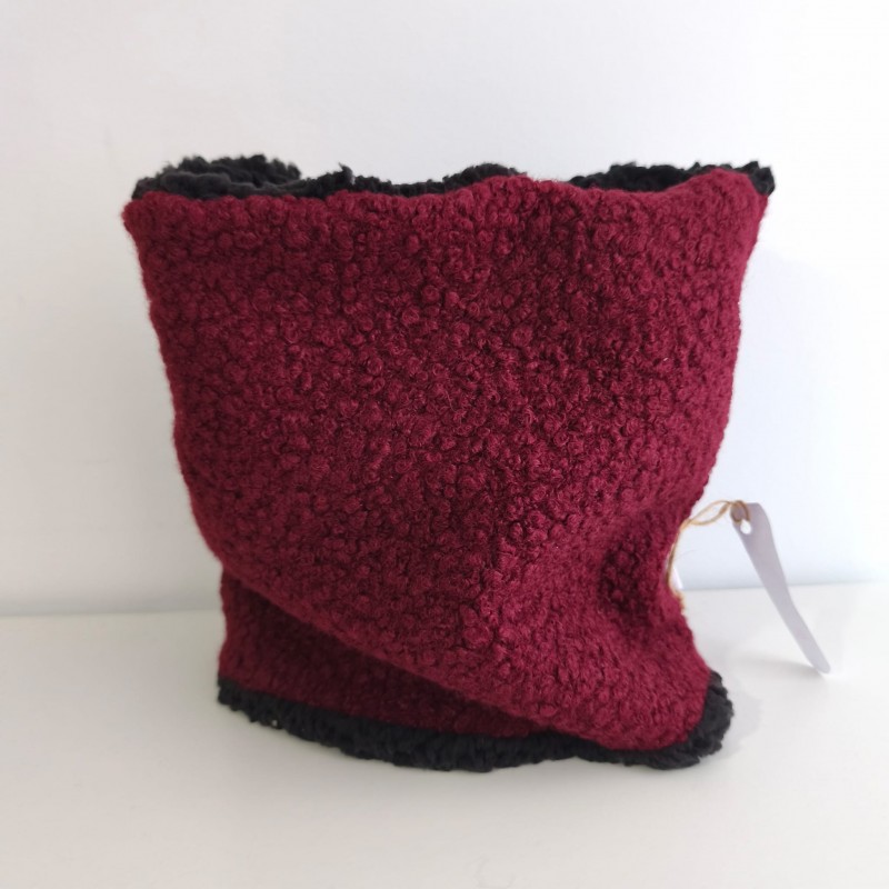 Cuello talla adulto en tejido de punto de rizo y tejido borreguito polar negro.