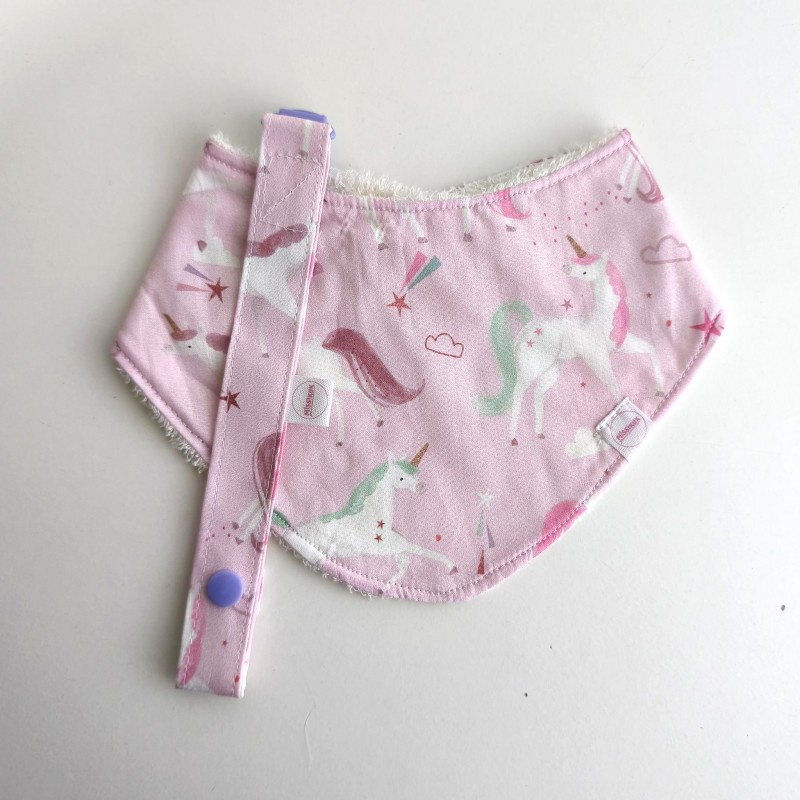 Bandana de algodón orgánico y tejido estampado unicornio.