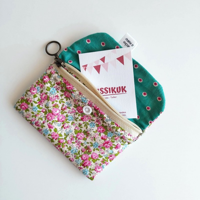Bolsillo tarjetero + bolsillo monedero con cremallera.