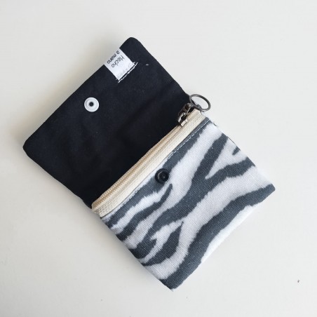 Bolsillo con cremallera para guardar monedas, y bolsillo para tarjetas.